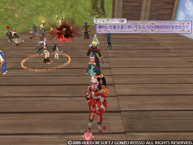 ゲームもほとんど終わりの状態で赤い羽根だけもらってちょっと気が引けましたが、なんだか大量に持ってるようなのでいいですよねw単純に計算してもたぶん3・40人くらい(舞台の端から並んで、並びきれずそとにはみ出してたしw)にあげてたなw私もアイテム枠50とかしてみたい・・・なんて思ってみたりw