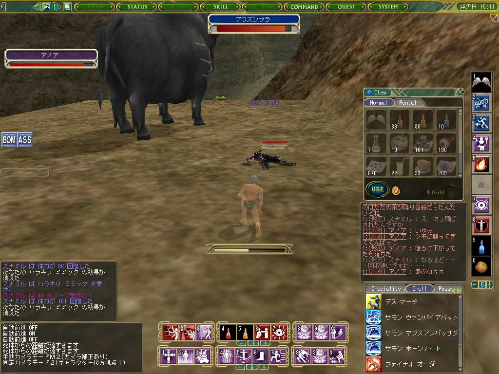いやー、深夜2人だけのアウズンブラ討伐は激戦でしたね。そして、すぐにアウズンブラの死体を回収してしまい申し訳なかった!w 反省してる!