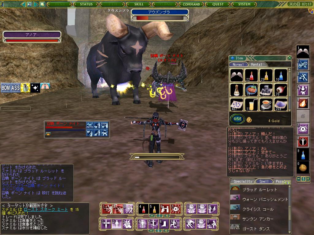 その日の昼、影忍チャットには僕とアノアさん、石さん、梅さんがいました。そこで4人でアウズンブラに行く事になり、準備をしていざ挑戦・・・