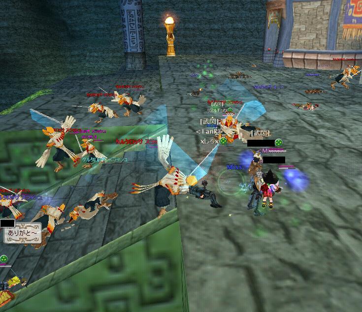 無事、捕らえられていたいっちょんを救出し、いっちょんGMからエイシスへの帰還命令が出た直後、見張り番最後のあがきで入り口あたりにスラッシュ&タイフーン大量発生。