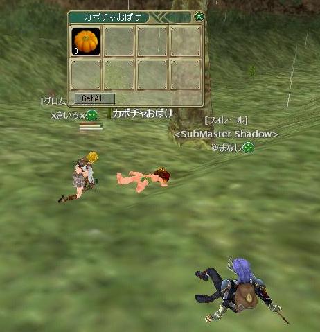 ちょうど盾を上げている最中にかぼちゃおばけ討伐に来たので運よく盾を持ってました、というか戦うフェイクロード計画万歳。