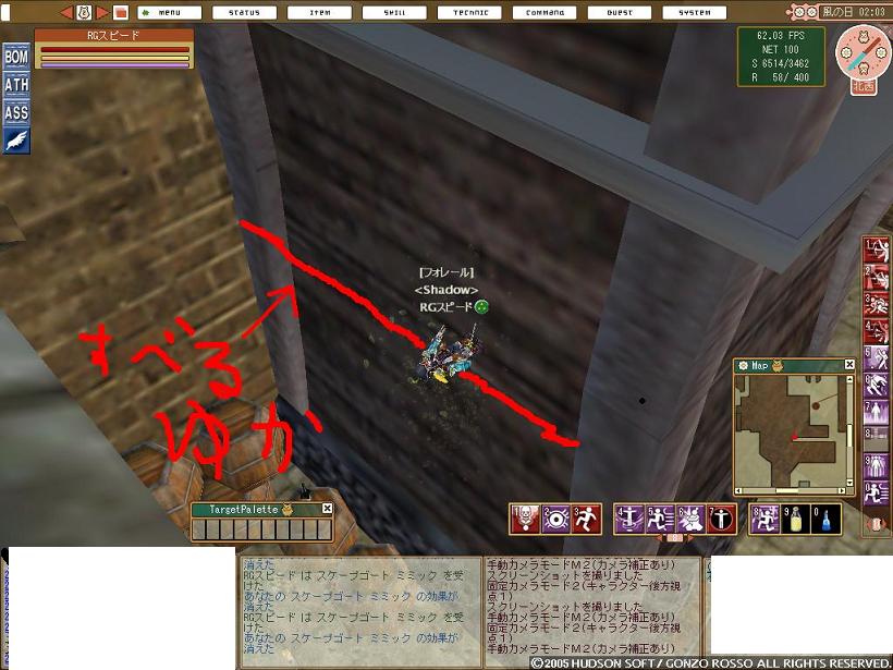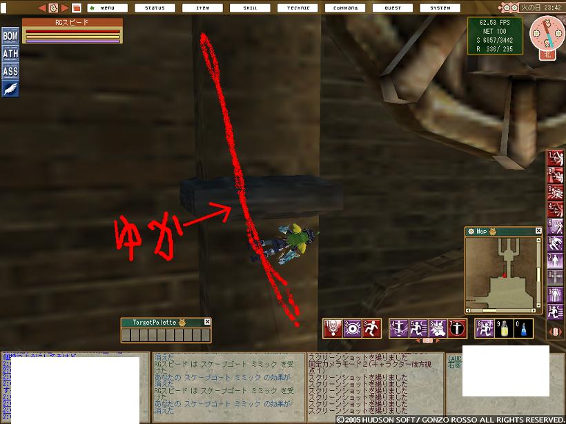 ここまで登れます。SSの赤線のところには滑る床があるのでそこを伝ってSS左のほうから