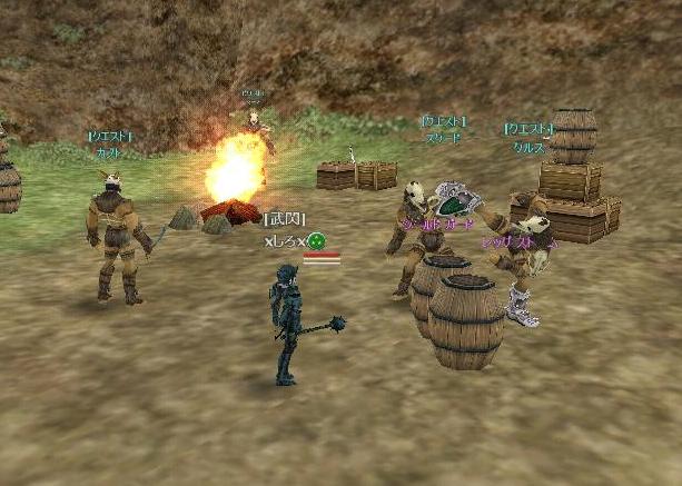 ビスク西からイプスに出て、下忍が湧く前にイプスを抜けてガルム回廊に入ると、武閃で誰もが一度はお世話になるであろう4人組が暮らしてるところでなんだか戦闘が・・・。